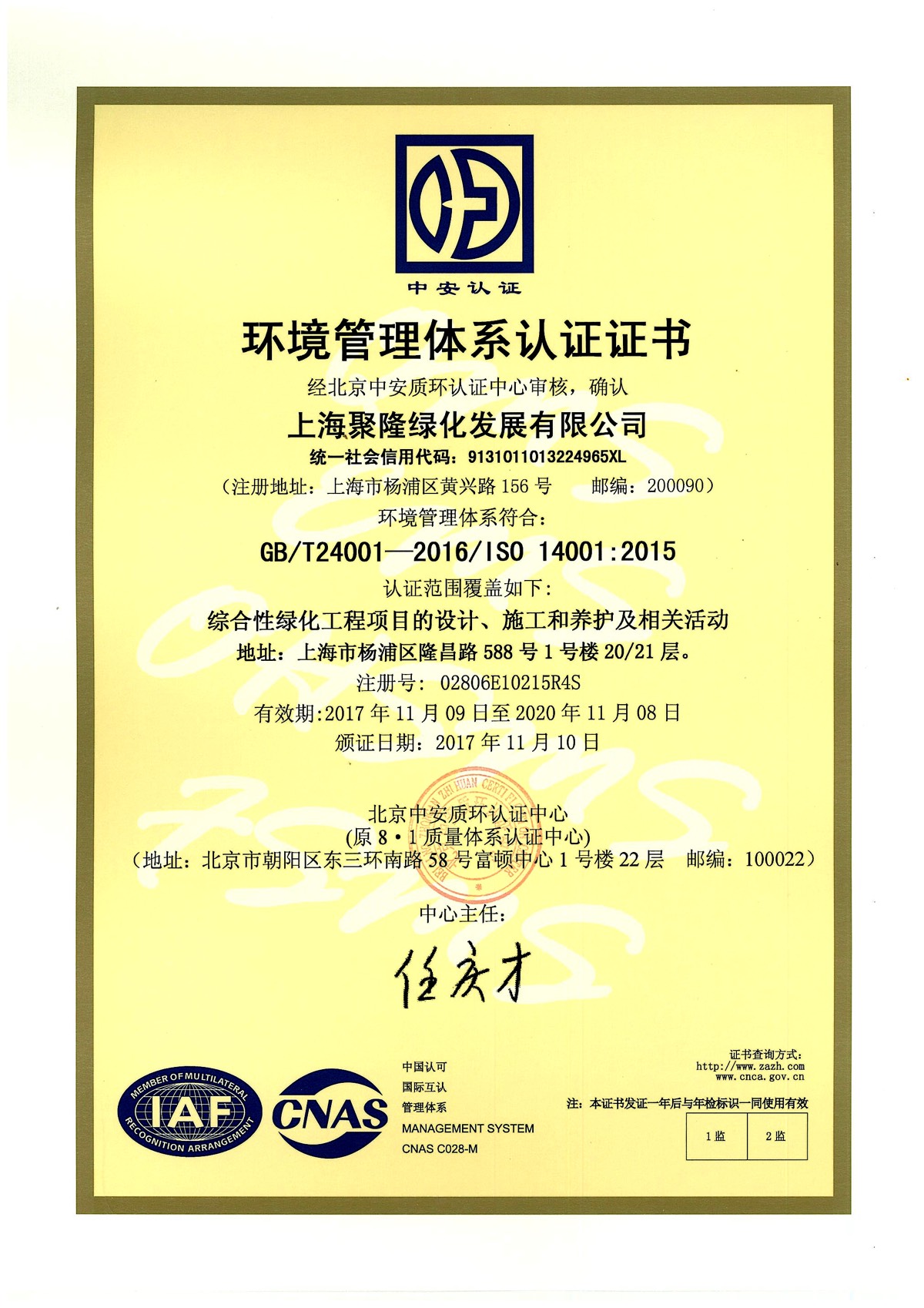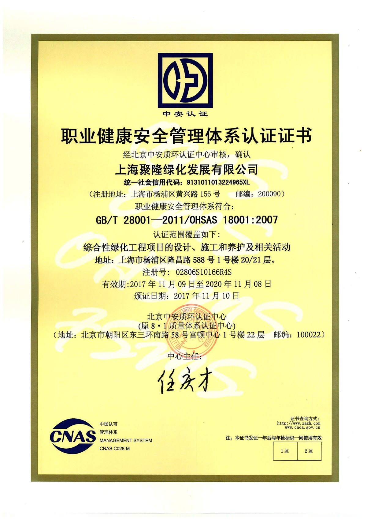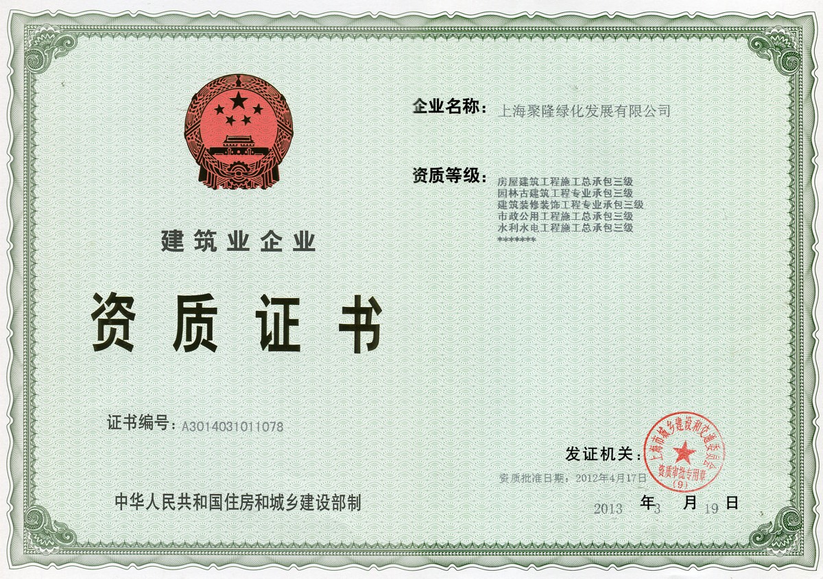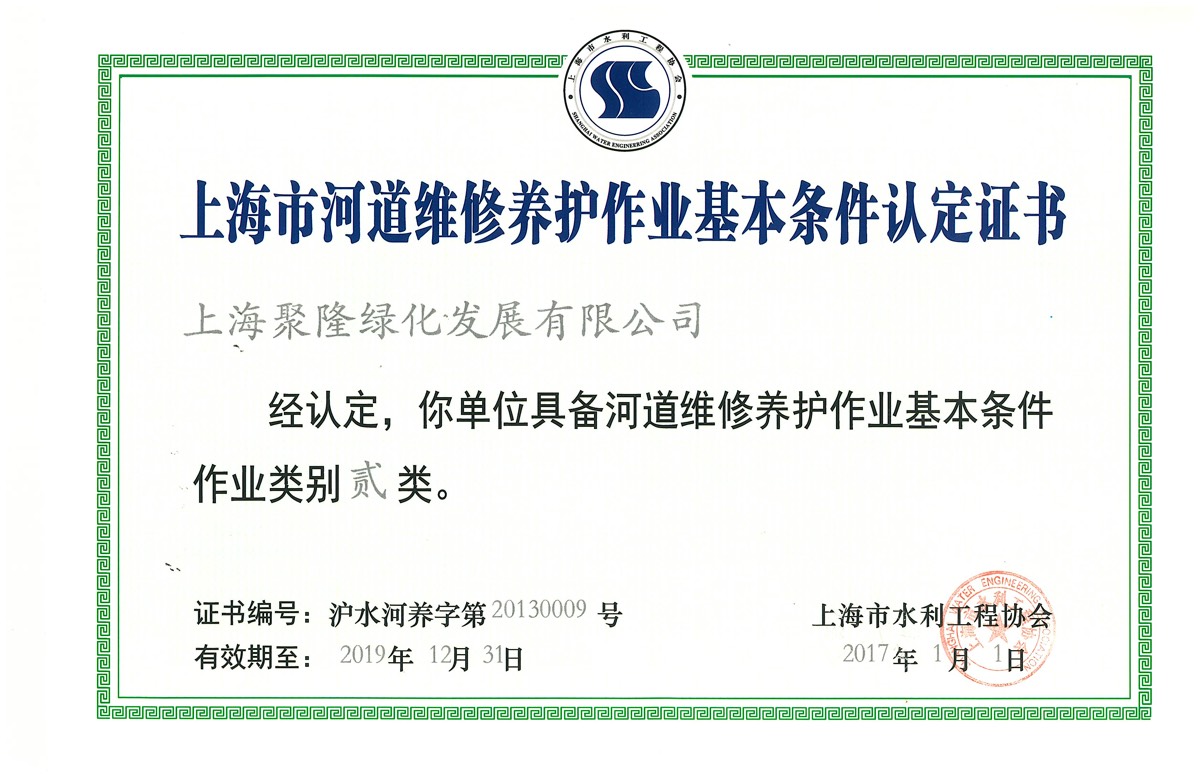 上海市河道维修养护作业基本条件认定证书